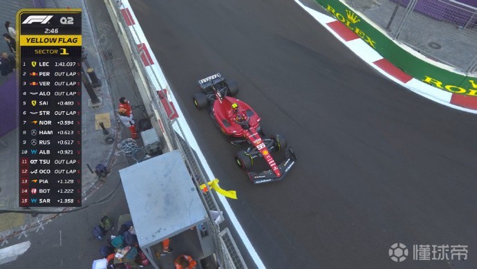 勒克莱尔第一赛段刷紫,随后被佩雷兹夺走。第二赛段勒克莱尔再次刷紫,最终做出1分40秒203的成绩,上到第一位!维斯塔潘落后0.188秒,最终勒克莱尔夺得巴库站正赛杆位!