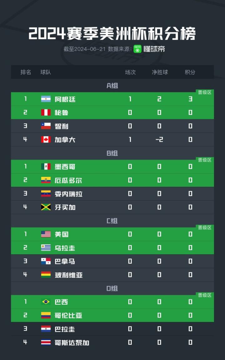 随着阿根廷揭幕战2-0拿下加拿大,2024年美洲杯正式打响。