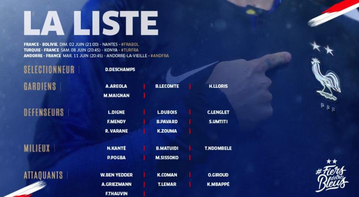 扫描下载懂球帝首页>动态> 法国队欧预赛大名单:姆巴佩、博格巴领衔,格子、科曼入选
