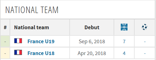 transfermarkt上的数据:卡鲁鲁在法国U19已经出场7次(图)