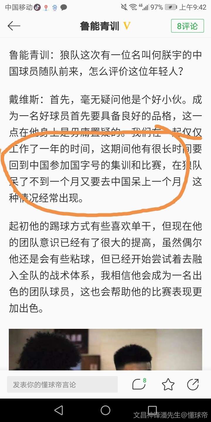鲁能青训:狼队这次有一位名叫何朕宇的中国球员随队前来,怎么评价这位年轻人?