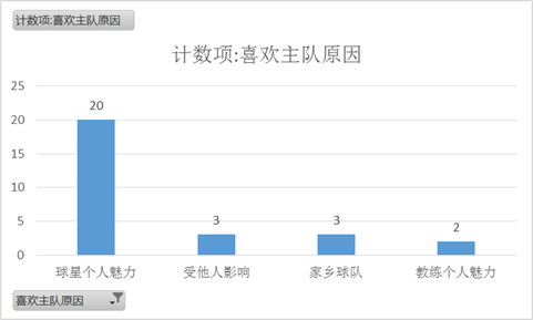 为什么选择了某支球队作为主队?其实无外乎四类原因(见图4):球星个人魅力(20/30)、家乡球队(3/30)、受他人影响(3/30)和教练个人魅力(2/30)。球星个人魅力占据绝对优势。
