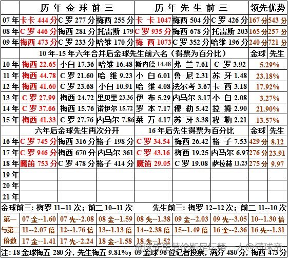 这几年的金球排名,金球前三次数,看看最后纪录是谁的