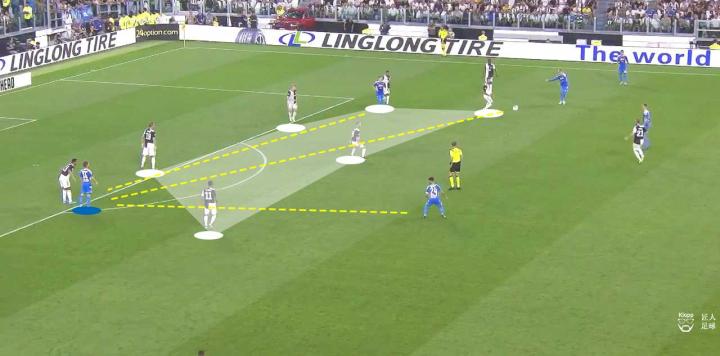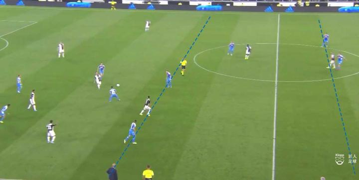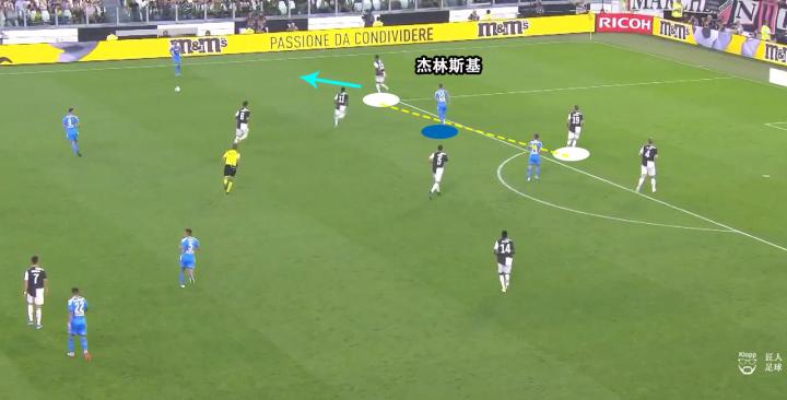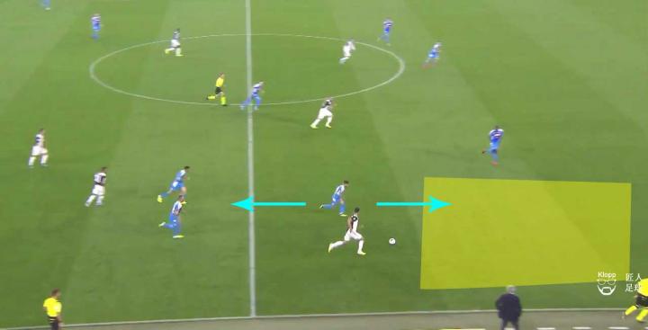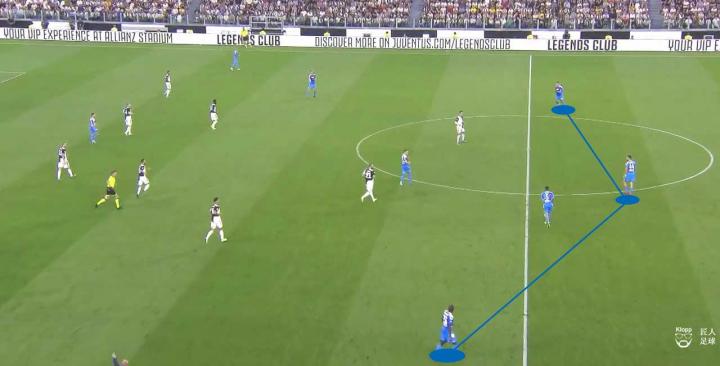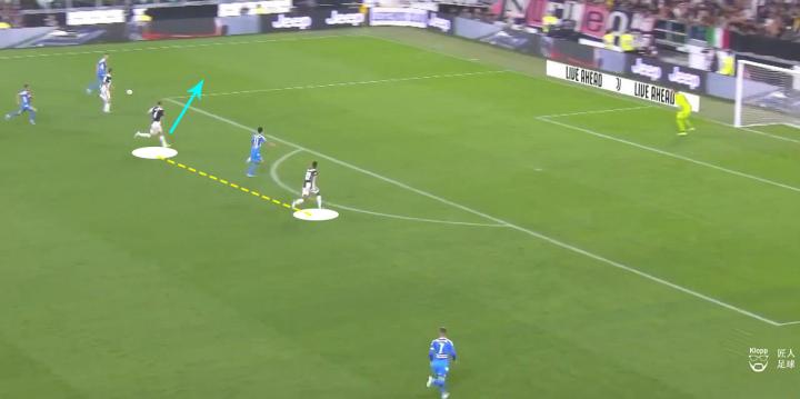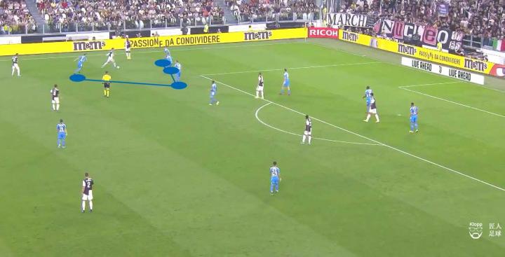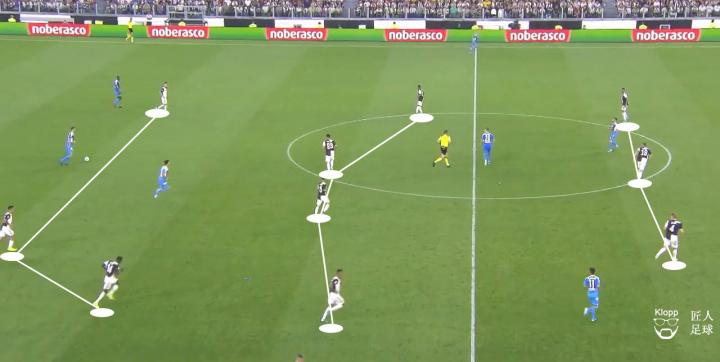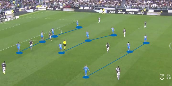 其带来的弊端不仅让那不勒斯的球员可以利用此空间拿球、转身以及分球,更使得尤文图斯的进攻中,队员之间因增大的距离而难以取得联系。