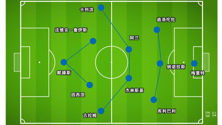 安切洛蒂上半场的布置无疑出现了问题,在3-4-3进攻阵型与4-4-2防守阵型的攻守转换下,那不勒斯无法构筑一条稳固的后防线,因西涅在攻守转换中疲于奔跑,古拉姆站位很高但却未能展现应有的冲击力。
