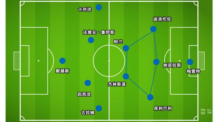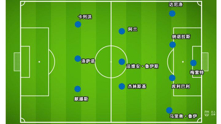 整个上半场,默滕斯与队友之间因距离过大而无法取得联系,那不勒斯的进攻在横向上似乎分成了左、中、右三部分,中路的比利时人孤立无援。
