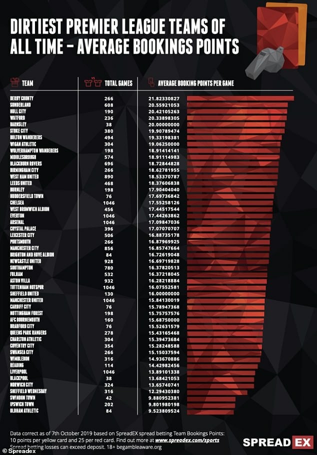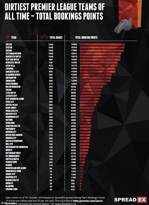 扫描下载懂球帝首页>动态> 英媒最新统计:切尔西和德比郡是英超史上拿牌最多的球队