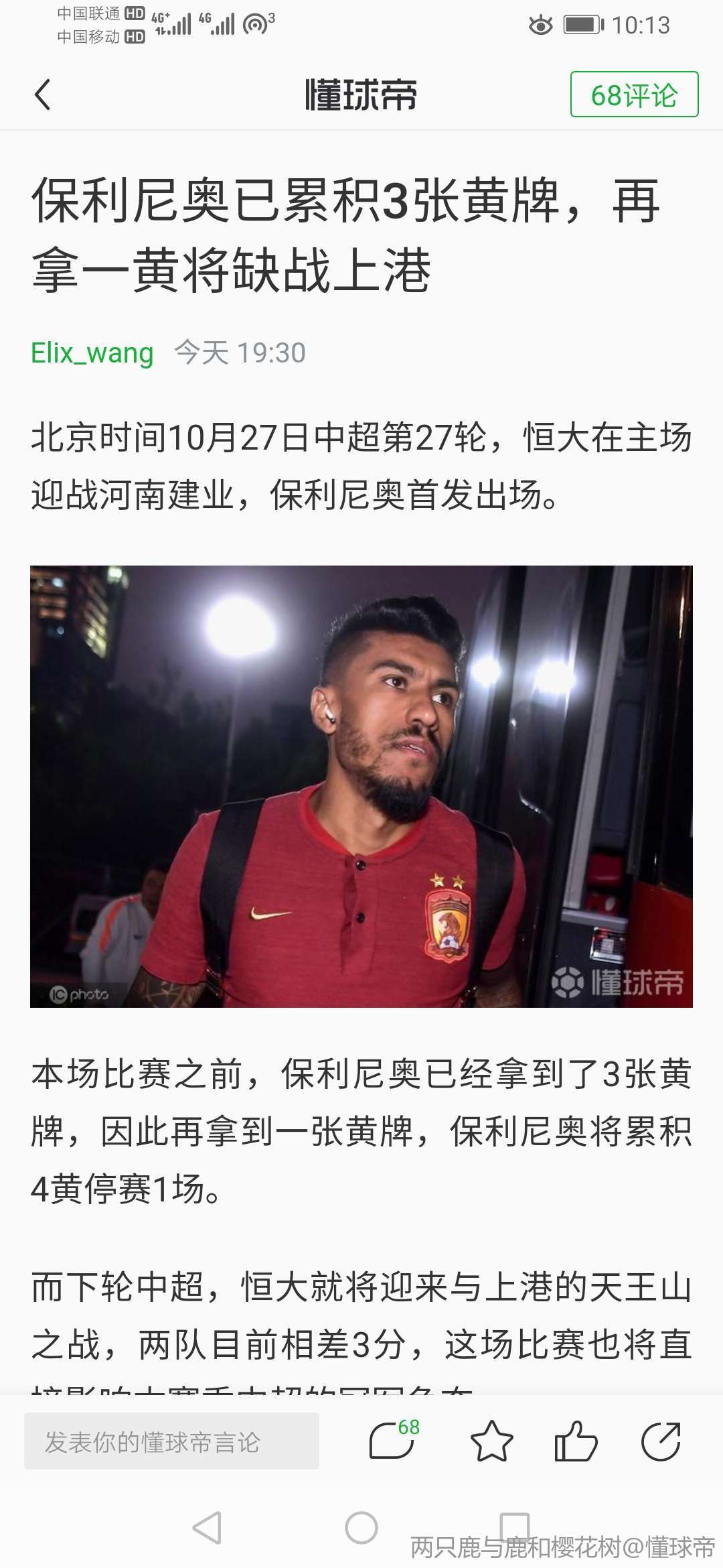 如果判了,保利尼奥四黄卡,下场踢上港就停赛了