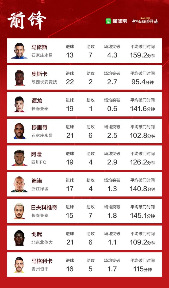 前锋奥斯卡穆里奇谭龙 一个国内的必须支持能力确实强来我鲁就好了 奥斯卡金靴没看过陕西长安竞技比赛但用时短 穆里奇我看过永昌比赛把握能力很强只能选仨就他仨了 没有克莱奥和里卡多没办法了
