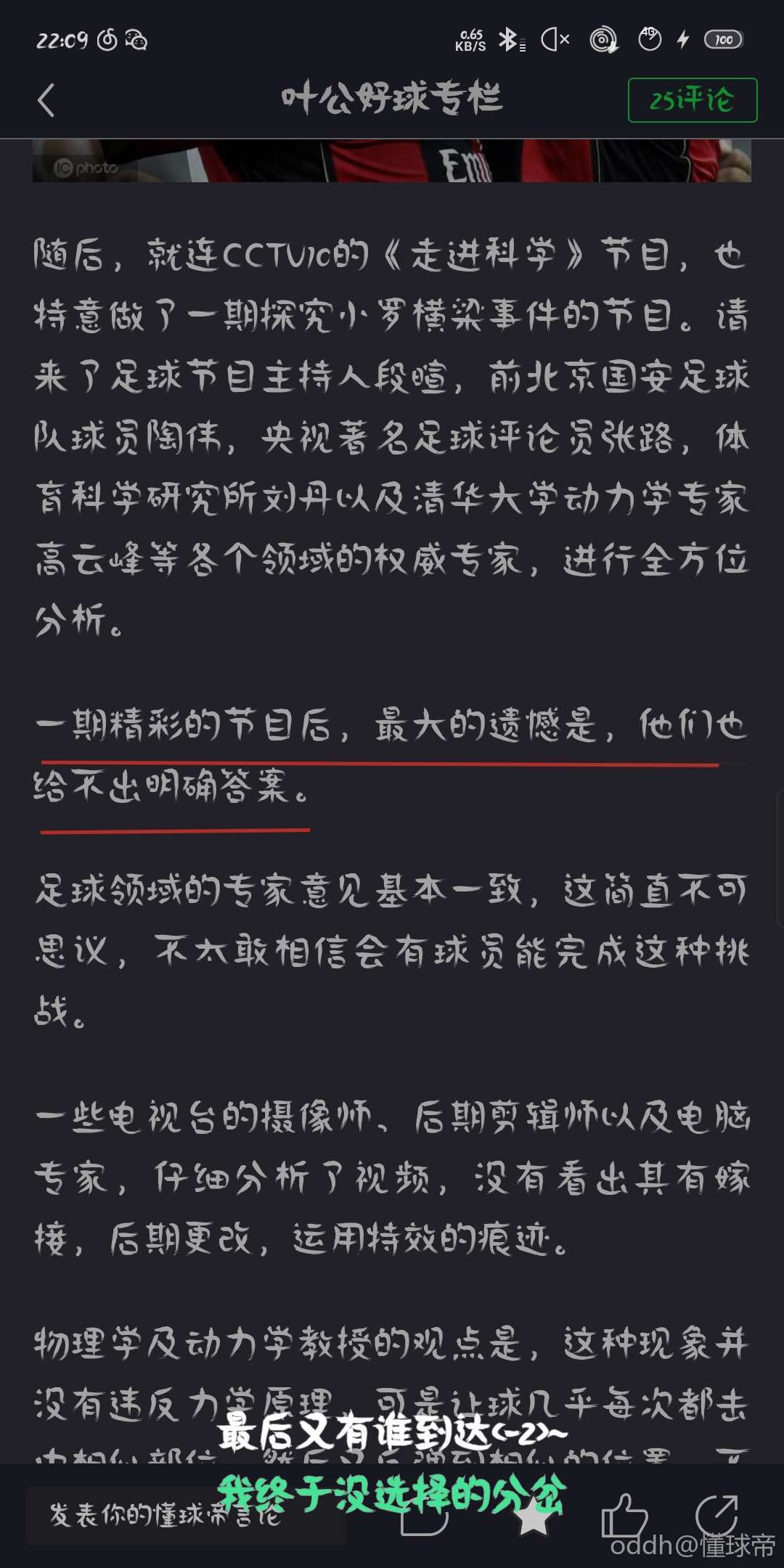 随后,就连CCTV10的《走进科学》节目,也特意做了一期探究小罗横梁事件的节目。请来了足球节目主持人段暄,前北京国安足球队球员陶伟,央视著名足球评论员张路,体育科学研究所刘丹以及清华大学动力学专家高云峰等各个领域的权威专家,进行全方位分析。