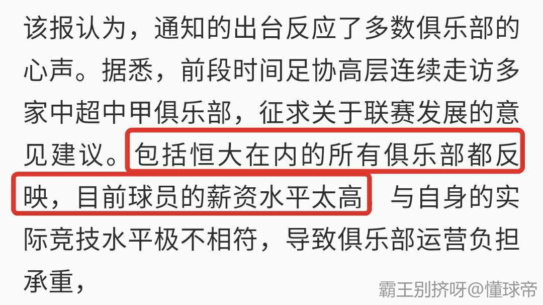 你们以为限薪是足协搞出来的,其实是足协调研的时候各俱乐部主动提出的,他们陷入了零和博弈,谁都不想再维持这么高的工资了,但又担心自己降了别人不降,所以都希望足协出面!