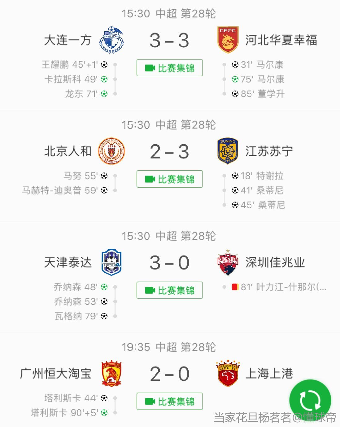 北京时间11月23日15:30,中超第28轮继续进行,大连一方坐镇主场迎战河北华夏幸福。上半场比赛,凭借马尔康的破门和王耀鹏的补时扳平,两队战成1-1平;下半场卡拉斯科造点并亲自主罚命中,汪晋贤造点龙东主罚命中,董学升造点马尔康主罚命中扳回一个。第85分钟董学升破门绝平,最终河北华夏幸福客场3-3绝平大连一方。