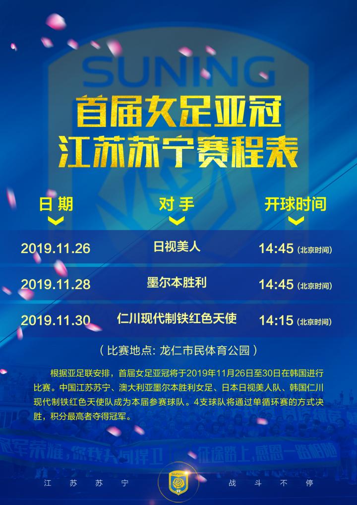 北京时间11月26日下午,首届女足亚冠在韩国龙仁市市民运动公园体育场打响。江苏苏宁女足在首轮比赛中,凭借塔比莎的单刀破门,1-1战平日本日视美人队,取得亚冠赛场第1分!
