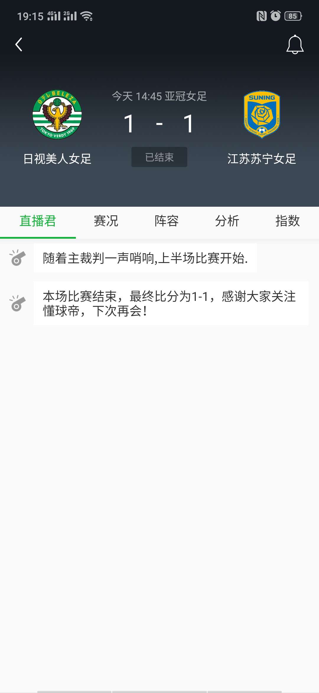 最终,双方1-1握手言和,各取一分。接下来,球队将在28日下午14:45对阵第2个对手澳大利亚墨尔本胜利女足,期待姑娘们有更加精彩的表现!