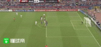 比赛第27分钟,巴萨获得前场任意球机会,哈维主罚尝试挂死角,皮球稍稍偏出球门。