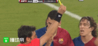 比赛第16分钟,皮克对C罗阻挡犯规后裁判对其出示黄牌。