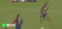 比赛第19分钟,埃托奥右边路送出回传,梅西拿球内切后突施冷箭起脚远射,皮球稍稍高出横梁。