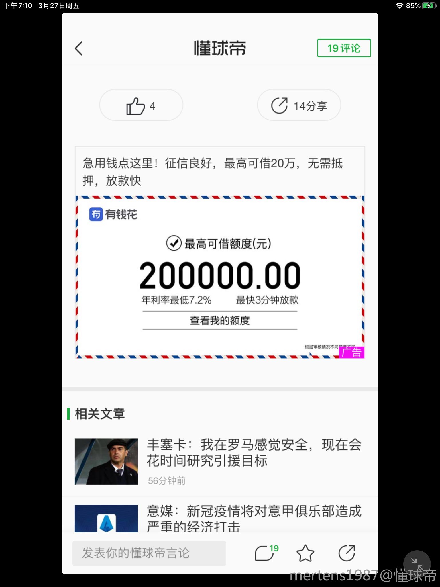 扫描下载懂球帝首页>动态> 米体:联赛停摆带来严重问题,20家意甲俱乐部总负债25亿欧元