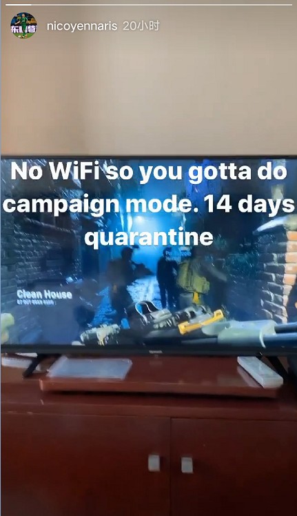 李可在视角媒体上晒出了自己玩射击游戏《使命召唤16》的视频,并表示自己隔离的地方没有WiFi,只能玩游戏中的单人战役模式(单机)。
