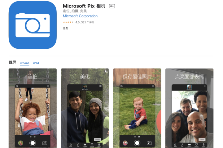 微软甚至专门在 iOS 平台推出过一款 Microsoft Pix 相机应用,来展示自己的 AI 技术。它支持用多张照片合成一张优质照片,在弱光下可以拍摄更清晰的人像,也支持艺术滤镜和类似 Live Photo 的动态图片。这个应用曾被《时代周刊》评为 2016 年度 50 强最佳应用,The Next Web 评价道:「微软打造了 iPhone 和 iPad 上最优秀、最易用的相机应用。」嗯,良心 iOS 开发者实锤了。