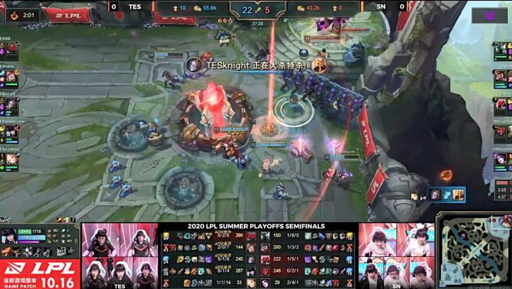 [27:28] 手握巨大优势,TES没有等到大龙重生,在SN高地一直刷伤害,随后直接一波掉了比赛