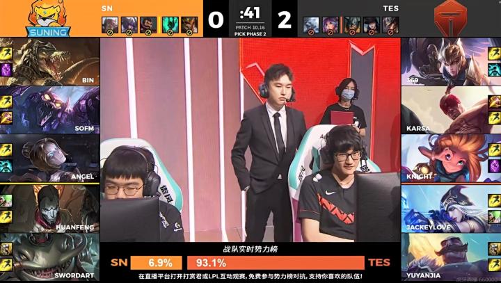 [18:53] TESPoke阵容发挥威力,打残SN众人,SN只好撤退,TES拿到听牌土龙