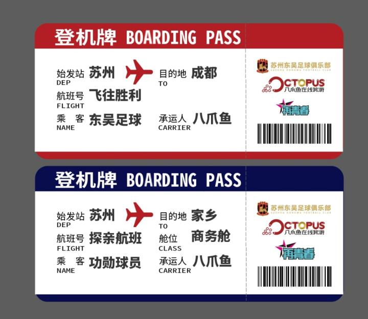 八爪鱼在线旅游为苏州东吴足球俱乐部球员勾俊晨、张竟哲颁发“五年员工奖”,并奖励两位球员商务舱探亲机票。