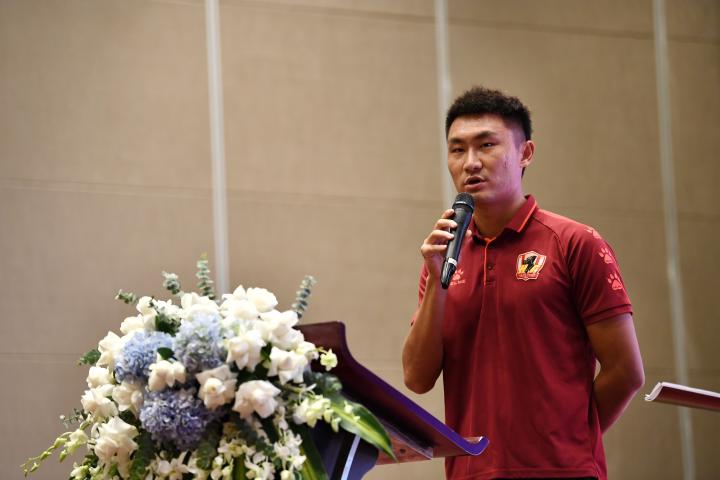 队长林隆昌在接过授旗后,也代表球员表达了对集团和球迷的感谢。“感谢集团以及投资人,今年很困难的情况下,让我们能有好的训练、生活保障,我们会用成绩来回报。经过九个月的磨合,我们一条心,做好了一切准备,把失去的拿回来。还要感谢球迷不论我们在巅峰还是低谷都一如既往支持我们,做我们坚强的后盾,虽然今年的比赛没有现场观众,但是我们会带着你们的希望在赛场上不懈拼搏。”