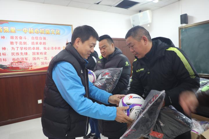 12 月 10 日上午 9 时,深圳市宝安区赴凯里市开展校园足球 " 星光计划 " 帮扶项目捐赠仪式在凯里一中举行。现场向凯里市各中小学校足球教练员及学生捐赠近百套茵浪足球装备。