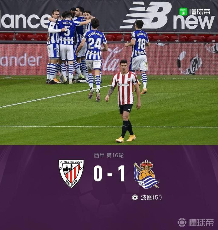 扫描下载懂球帝首页>动态> 皇家社会1-0毕尔巴鄂竞技终结联赛3连败,波图开场破门制胜