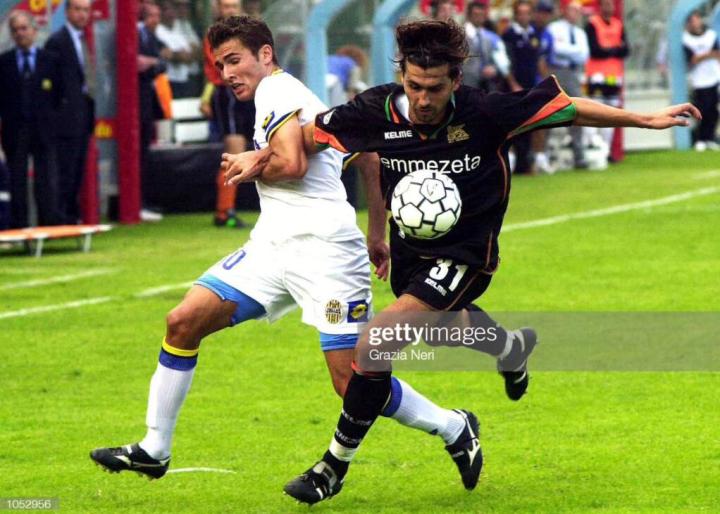 可他还没来得及买法拉利,他就离开了国米,当年国米锋线人才济济,穆图获得了10次替补出场,没有打入一个进球,最终在赛季结束被卖给了维罗纳俱乐部。值得一提的是,在国米时期,穆图穿的球鞋居然是巴乔的diadora mars,而且看样子是白色鞋底的定制版本,按照穆图当时的地位,绝无可能享受这样的待遇,所以他的穿的球鞋应该就是巴乔的鞋,说明他的脚和巴乔一样大都是41码,巴乔和他的关系应该也非常不错。