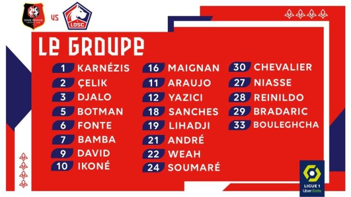 里尔官方公布了出战当地时间周日客场与雷恩的法甲联赛的大名单,切利克回归,希卡停赛。