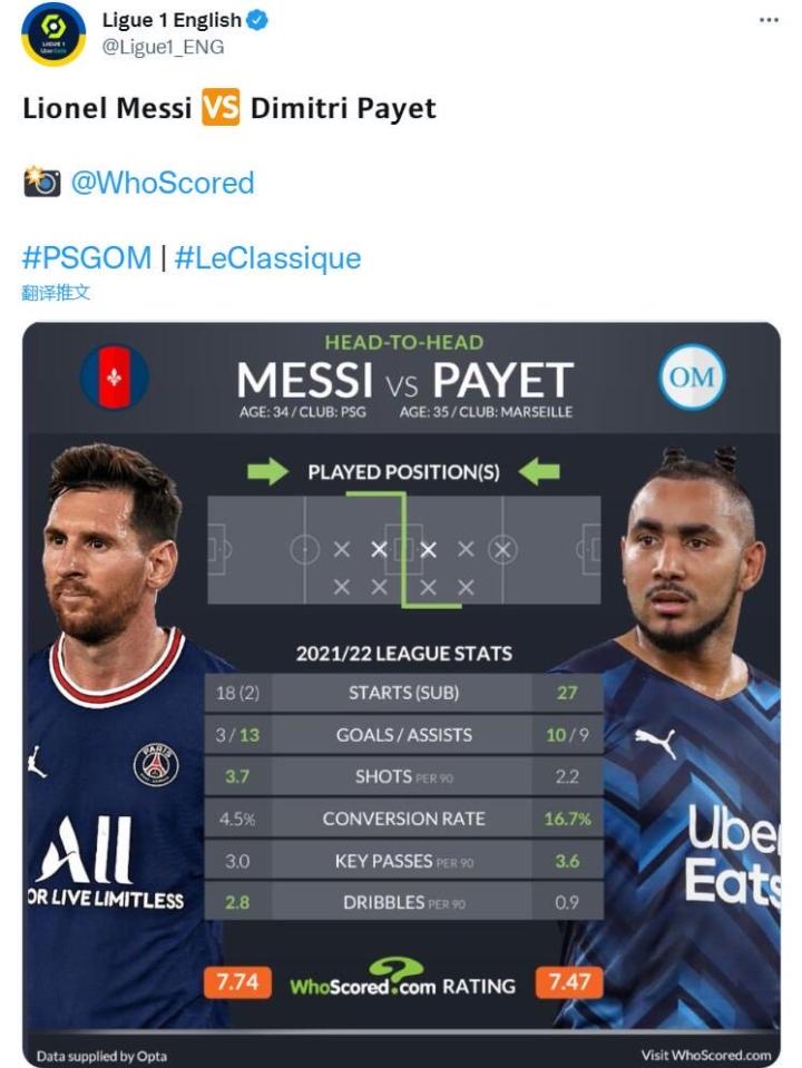 扫描下载懂球帝首页>动态> 懂球号> 法甲官方数据:梅西vs帕耶,梅西参与16球,帕耶...