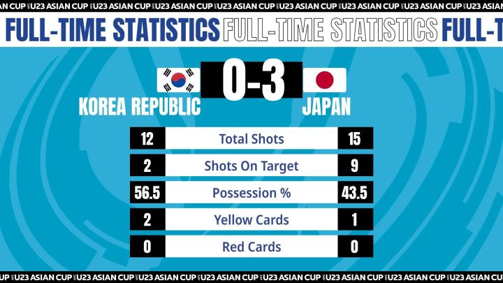 扫描下载懂球帝首页>动态> U23亚洲杯日本3-0韩国全场数据:韩国控球占优;日本15射9正