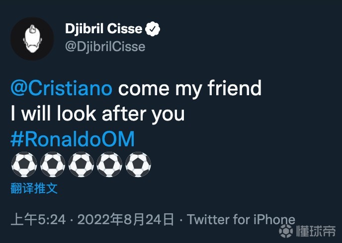 扫描下载懂球帝首页>动态> 前法国国脚西塞喊话C罗:来马赛吧!我会照顾你的