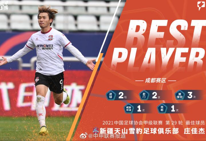 庄佳杰多次入选国少和国青,代表国奥队征战过仁川亚运会,43场职业联赛经验,上赛季在中甲新疆天山雪豹,收获6球1助攻,是队内最佳射手还拿过成都赛区最佳球员,本赛季加盟中乙湖北青年星,4场有1球入账。值得一提的是,上赛季甲乙附加赛,庄佳杰还和广西平果哈嘹交过手。