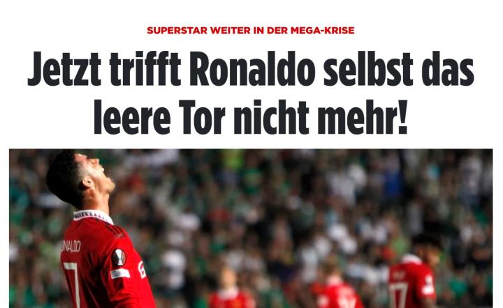 扫描下载懂球帝首页>动态> 英雄迟暮,图片报感慨:C罗现在连空门都很难进球了