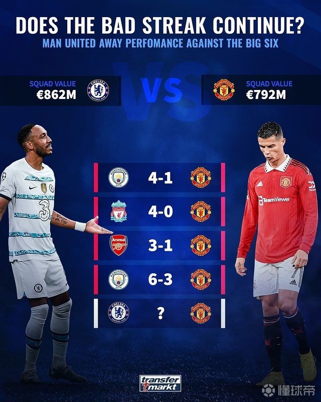 扫描下载懂球帝首页>动态> 对切尔西能否拿分?曼联英超客战BIG6已遭遇4连败