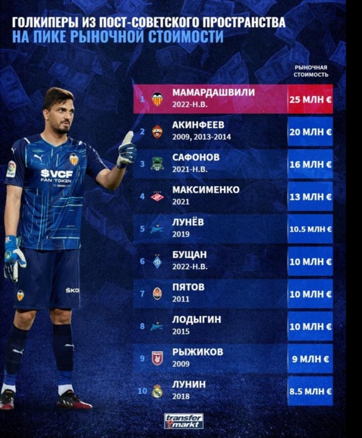 扫描下载懂球帝首页>动态> 懂球号> 德转泛俄区:马马尔达什维利刷新前苏联地区门将身价记录