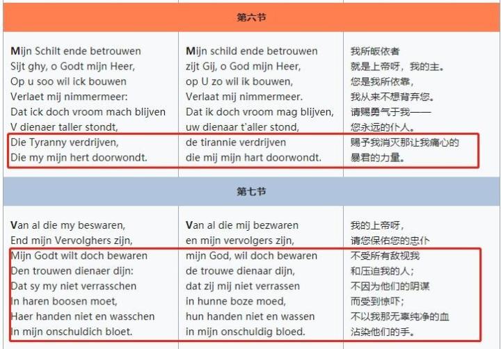 《威廉颂》是荷兰的国歌,是以尼德兰革命的领导者、被尊称为荷兰国父的威廉·奥兰治(威廉一世)的口吻写的。
