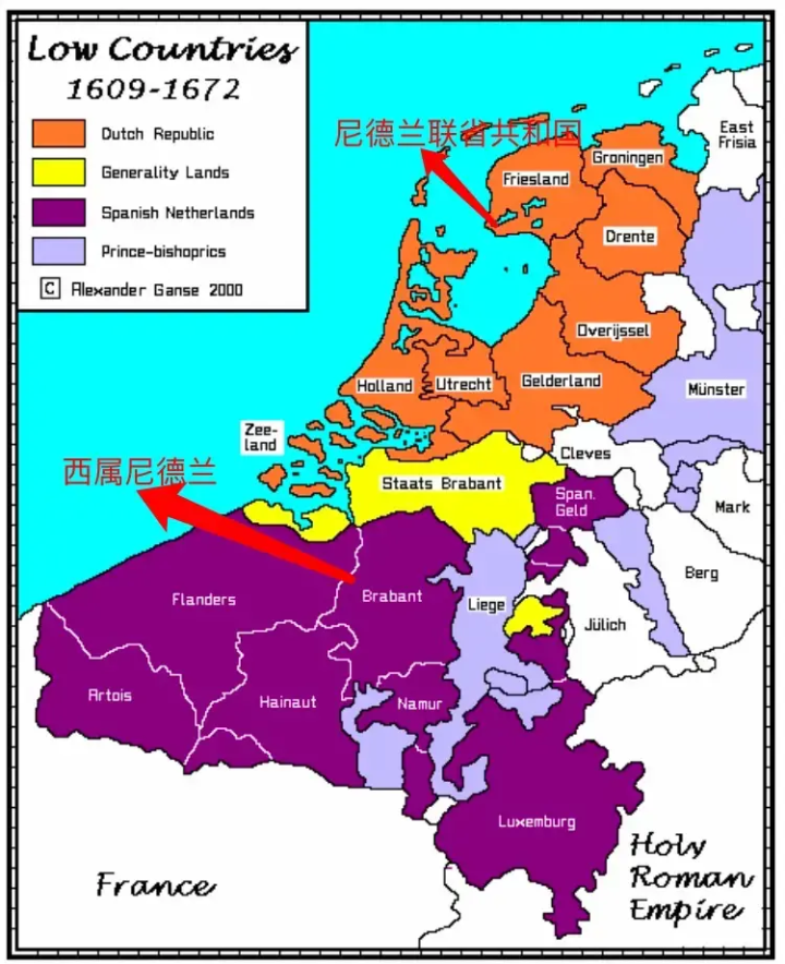 南方依然留在西班牙境内,成为了今天的比利时的前身。