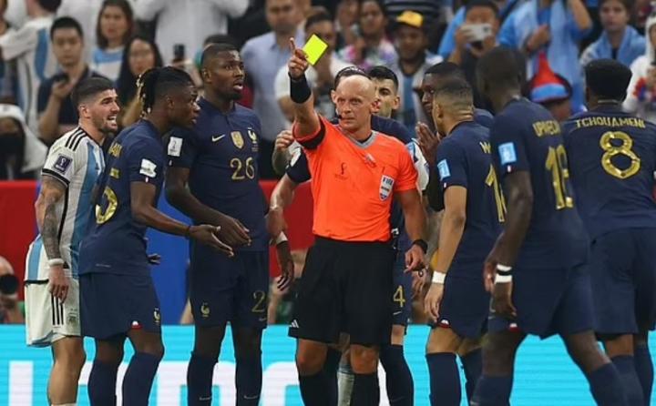 法国队的第二个点球不成立,科曼推到梅西抢到的球