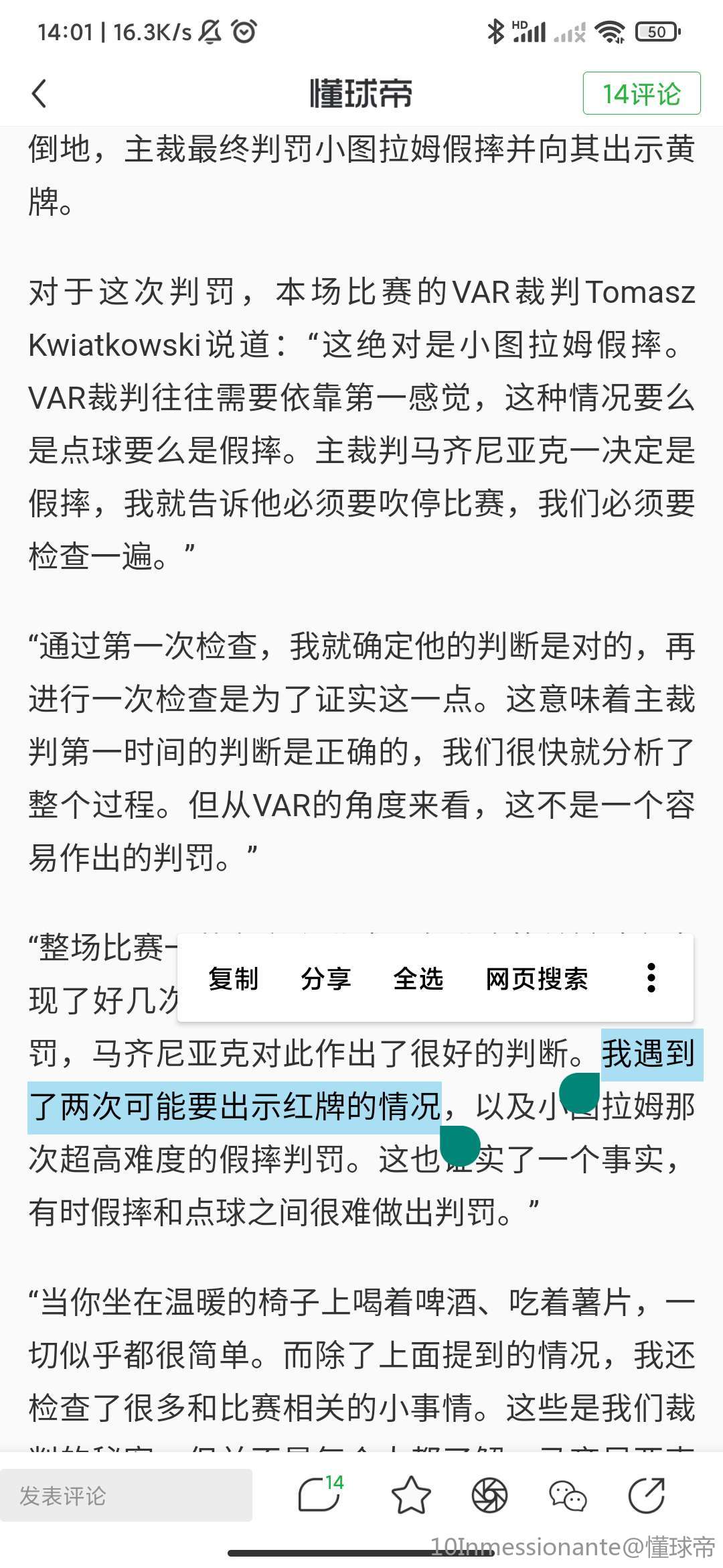 那个判罚是真的牛逼,我当时也以为是点球,看了几遍才看出来确实是假摔