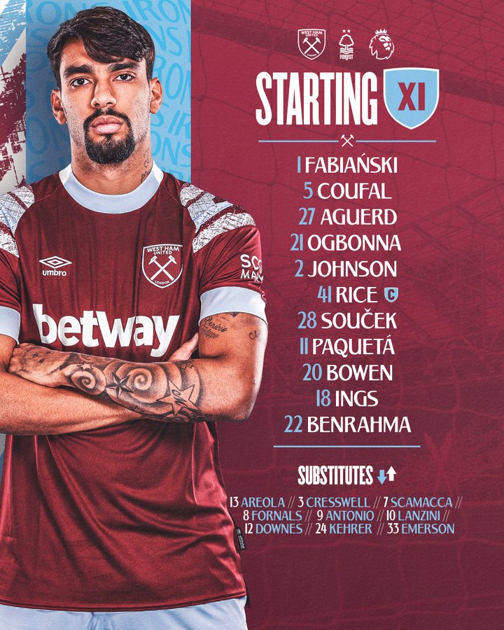 扫描下载懂球帝首页>动态> 懂球号> ⚒首发公布丨西汉姆联 vs 诺丁汉森林首发:1号...
