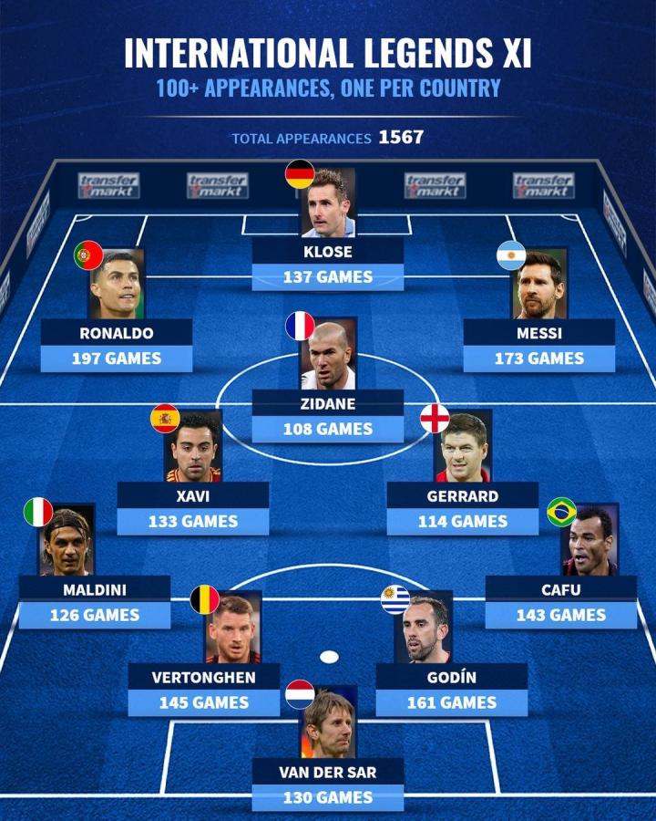 扫描下载懂球帝首页>动态> 懂球号> 国家队场次100+最佳11人,你觉的这个阵容怎么样?
