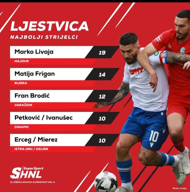 4.佩特科维奇(萨格勒布迪纳摩)、伊万努舍茨(萨格勒布迪纳摩)、埃尔采格(伊斯特拉)、梅雷斯(奥西耶克):10