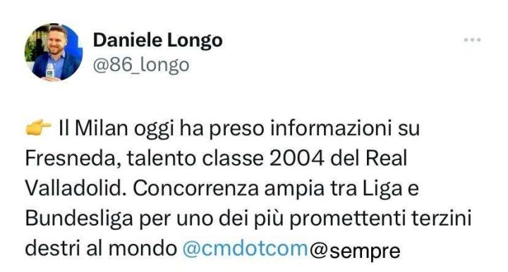 扫描下载懂球帝首页>动态> 懂球号> 隆戈:米兰询问了巴拉多利德右后卫弗雷斯内达的情况...