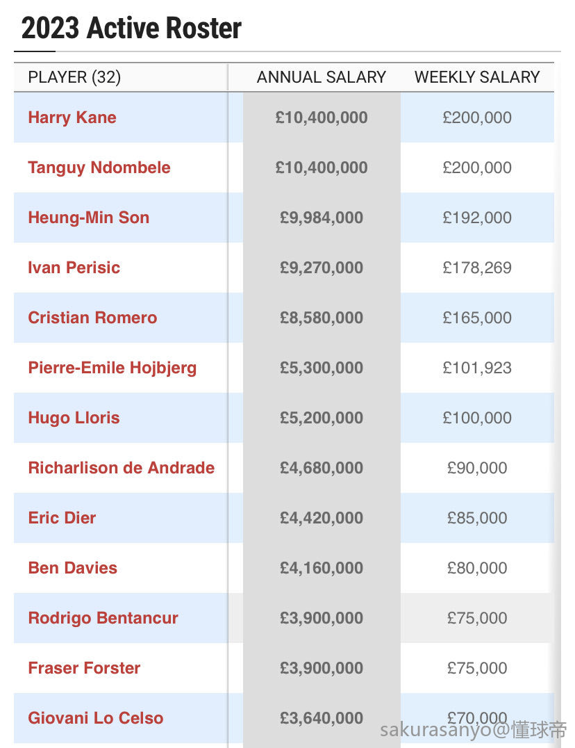 热刺球迷:拜仁最高周薪不是和咱一样吗,咱还多一点