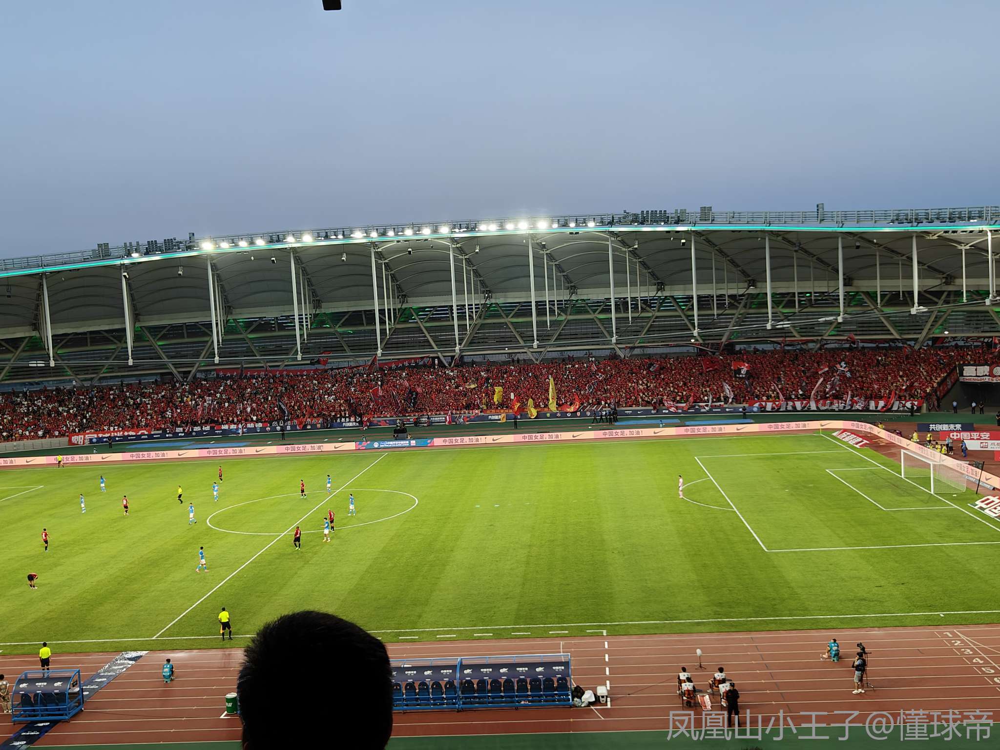 各个球迷协会连在一起,助威声音丝毫不弱于在凤凰山,更加整齐响亮更加震撼,在这边散客更能跟上刀锋的节奏,胜利永远属于我们响彻乐山。换个主场也能这么多球迷支持,这就是成都的球迷文化