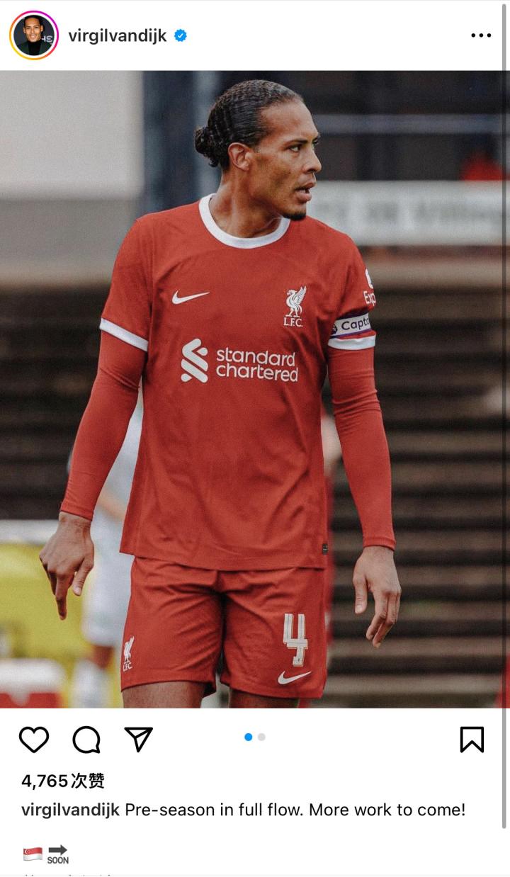 扫描下载懂球帝首页>动态> 懂球号> 范戴克更新社交媒体,翻译👇🏽季前赛全速模式,正在...